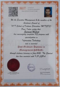 | PGDM in Information Technology & International Marketing | MIT Pune (2020) |