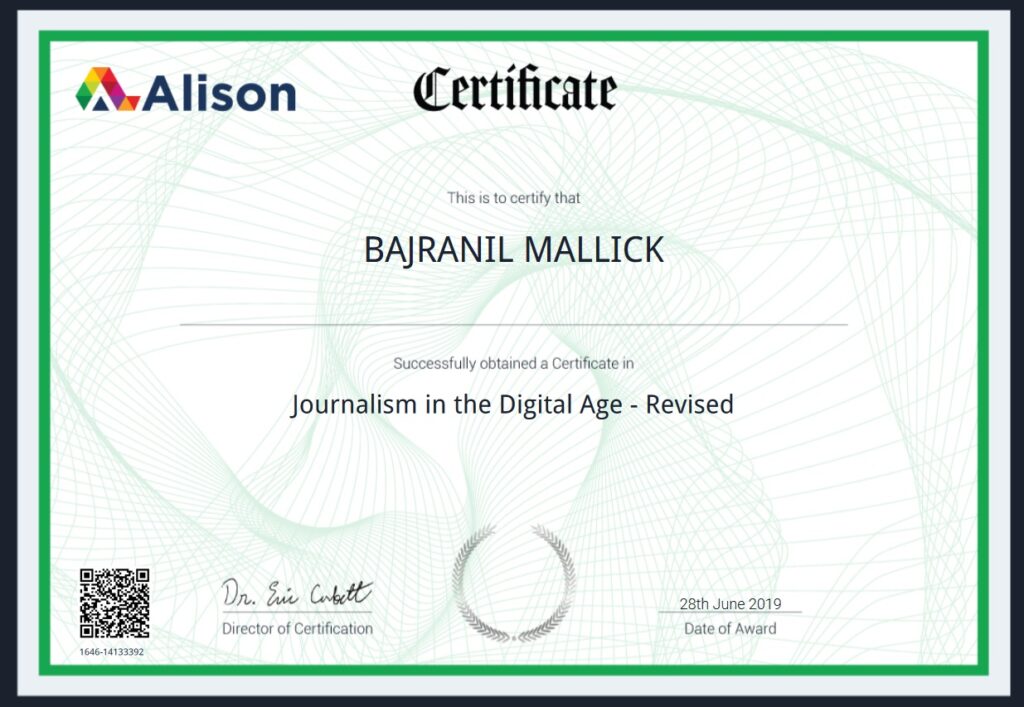 | Certificate in Journalism in the Digital Age | Alison Learning Platform (2019) |